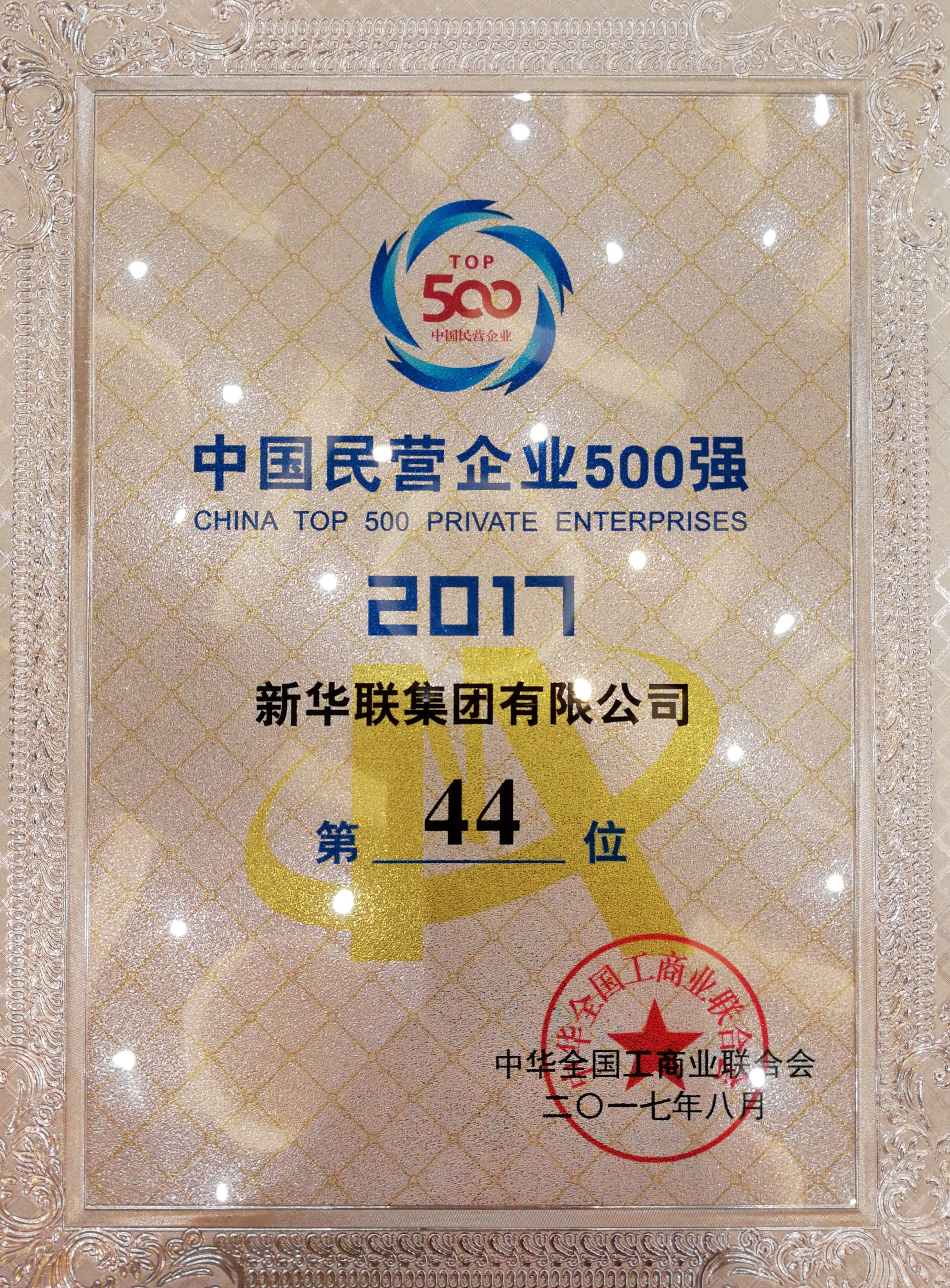 8月24日上午,全國工商聯在山東濟南發布了2017中國民營企業500強榜單,新華聯集團第13次躋身該榜單,榮列第44位。華為投資控股有限公司、蘇寧控股集團、山東魏橋創業集團有限公司分別以年營業收入5215.74億元、4129.51億元、3731.83億元,名列榜單前三甲。數據顯示,2017中國民營企業500強入圍門檻為120.52億元,較上年提升18.77億元。
