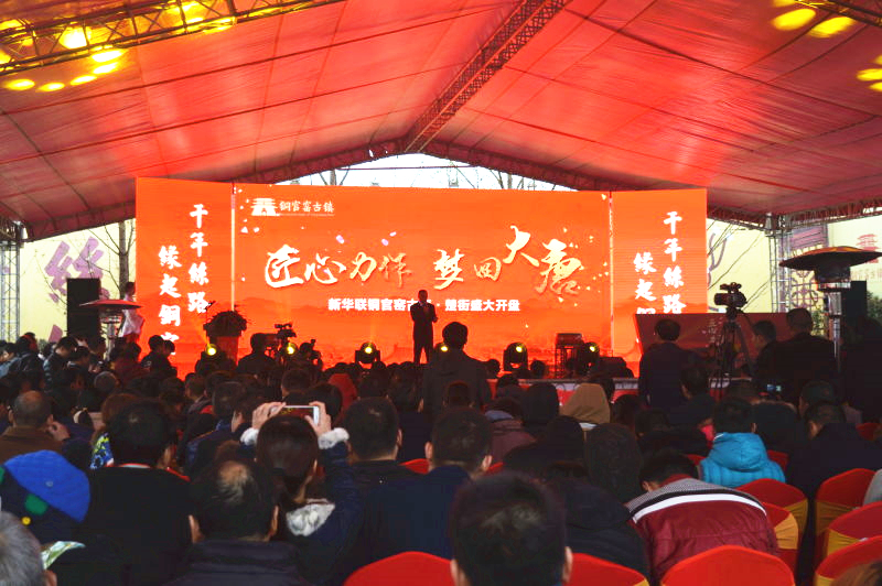 11月18日,長沙新華聯銅官窯古鎮沿江商業首次開盤儀式在古鎮營銷中心盛大舉行。定位于“天下湘菜”的“楚街”對外發售,熱銷5億元。新華聯集團高級助理總裁兼銅官新華聯公司董事長李建剛、新華聯文旅發展公司總建筑師管輝、銅官新華聯公司總經理傅濟、湖南海外旅游公司董事長蔣燕妮、《長沙晚報》報業集團總經理董小林、湖南省餐飲協會名譽會長周新潮、長沙火宮殿品牌連鎖管理有限公司總經理周后長等領導和嘉賓、購房客戶及當地市民600余人見證了開盤盛況。