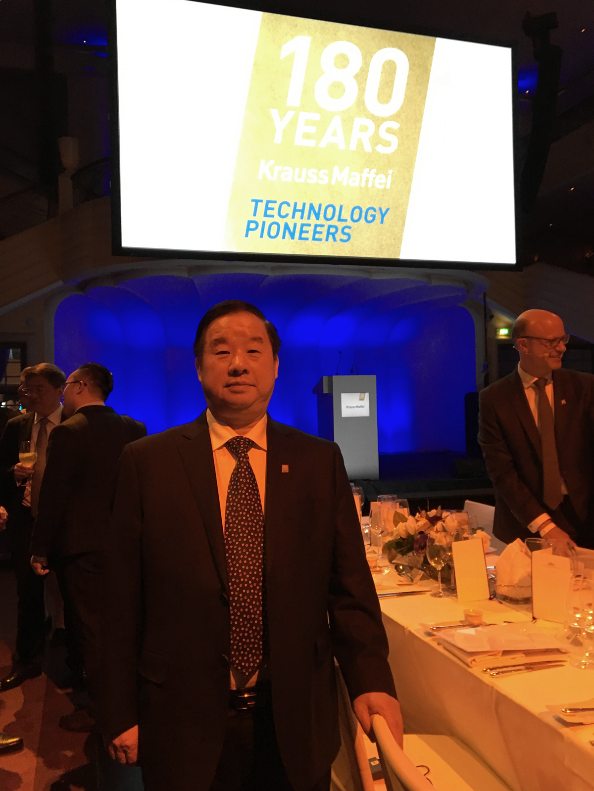 克勞斯瑪菲集團(tuán)首席執(zhí)行官Frank Stiele博士,中國(guó)化工集團(tuán)公司董事長(zhǎng)任建新,慕尼黑市市長(zhǎng)Reiter Dieter,巴伐利亞州經(jīng)濟(jì)、能源和技術(shù)部部長(zhǎng)Puecher分別致辭。他們回顧了克勞斯瑪菲180年來(lái)的發(fā)展歷程,肯定了該公司對(duì)社會(huì)的貢獻(xiàn)和行業(yè)地位,展望了它繼續(xù)創(chuàng)新的美好未來(lái)。克勞斯瑪菲集團(tuán)股東、客戶、供應(yīng)商、當(dāng)?shù)卣吞匮钨e等近300人參加了慶典。