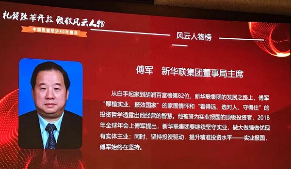10、傅軍總裁以卓越的商業成就和強烈的社會責任感入選中央統戰部、全國工商聯評定的“改革開放40年百名杰出民營企業家”和“中國民營經濟40年風云人物”。