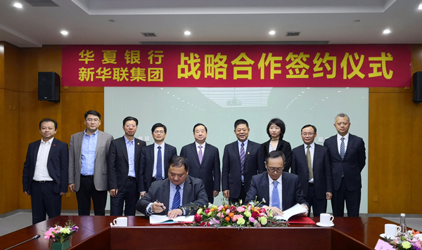 新華聯集團馮建軍高級副總裁與華夏銀行王勝春副行長分別代表雙方在戰略合作協議上簽字。新華聯集團與華夏銀行將建立長期穩定的戰略合作關系,華夏銀行將為新華聯集團提供總額100億元的融資服務。